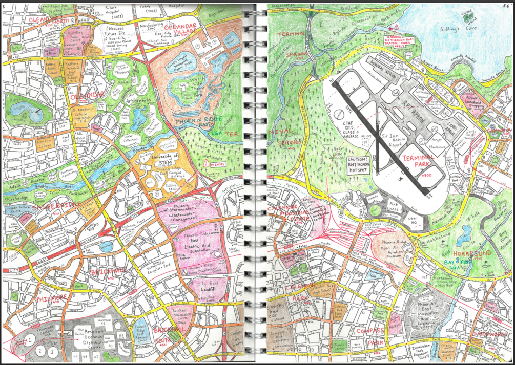 PHOENIX RIDGE - Hand-drawn Map 1 to 6 - Fictional City - 1st EDITION